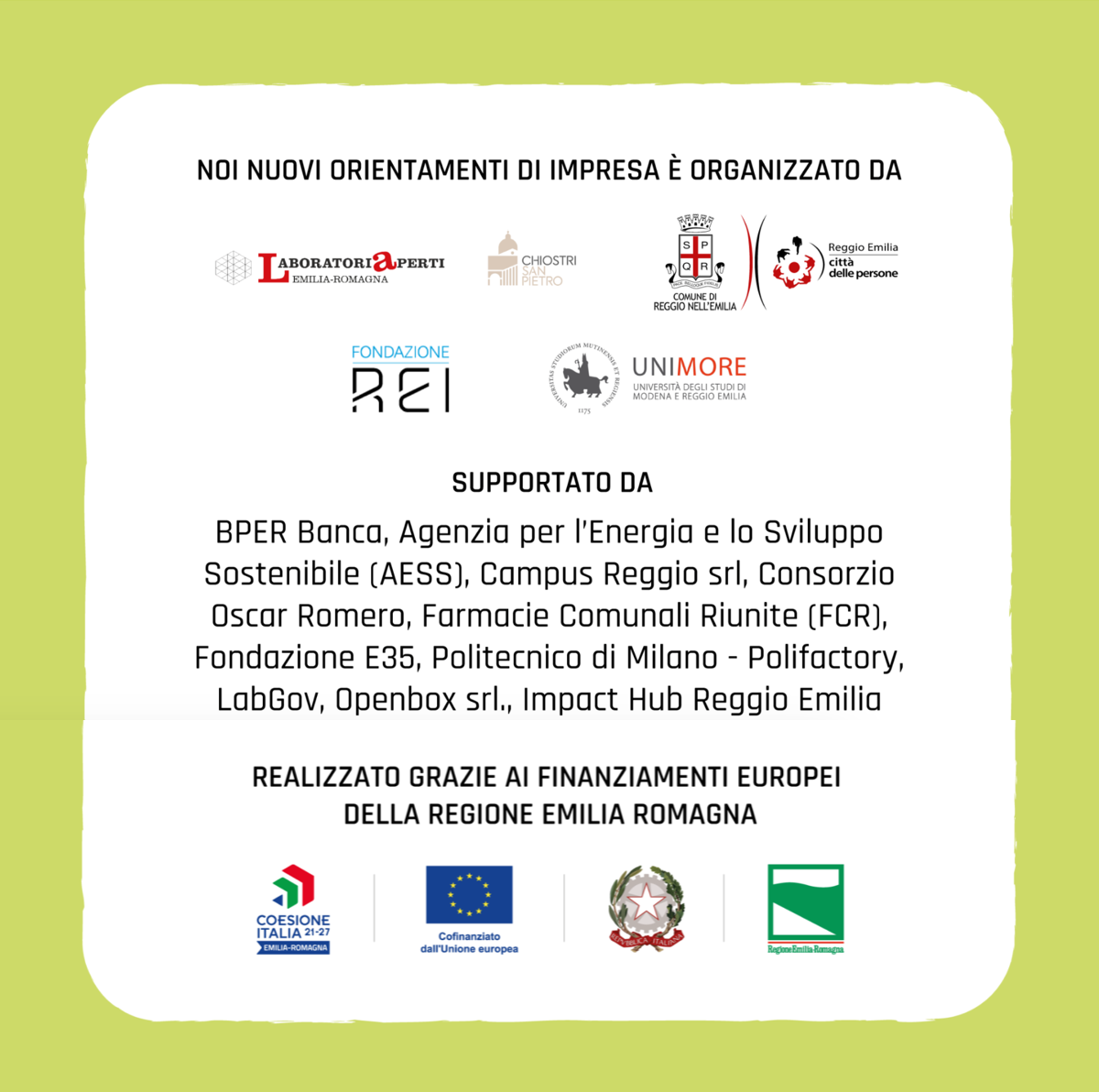 Now at the end of the business incubation process NOI – Nuovi Orientamenti di Impresa, created thanks to European funds from the Emilia-Romagna Region within the projects of the Open Laboratory of Reggio Emilia in collaboration with the Municipality of Reggio Emilia, the REI Foundation (Reggio Emilia Innovation) and the University of Modena and Reggio Emilia. Girotondo SRL Benefit has started the activities of Girotondo Impact, a micro-entrepreneurship acceleration service in the Apennines.