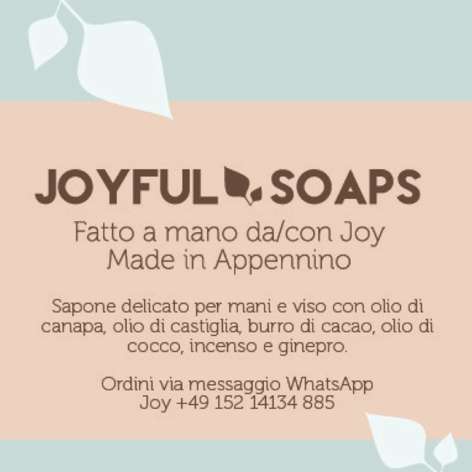 Natural soaps and cosmetics handmade with ingredients from the woods of the Appennino Tosco-Emiliano National Park. Joyful Soaps begins its offer with handmade soaps with the project of expanding the offer to include cosmetics and home hygiene products. Joy, the founder of Joyful Soaps, is the mother of Clentine, a wonderful child who goes to school in Busana.